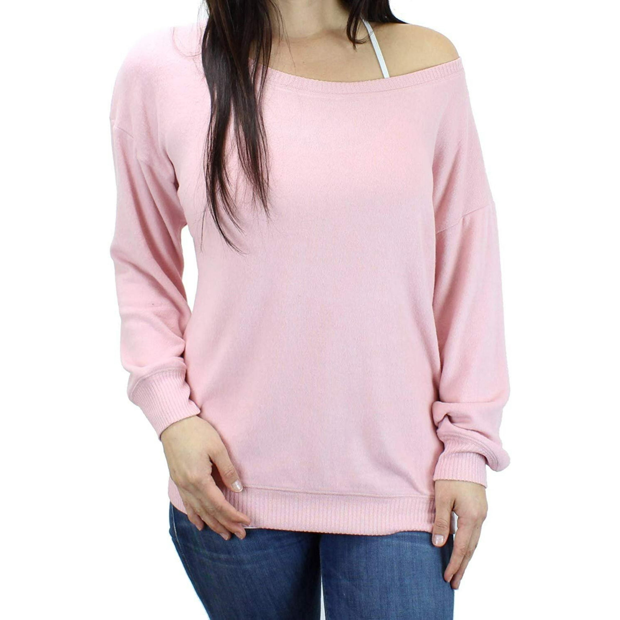 Ms Lovely Ultra Soft Women S Off Shoulder Boatneck Pullover Sweatshirt Pink Large Walmart Com