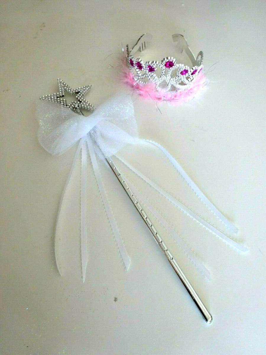Princess Fairy Crown Tiara Wand Set Silver Pink Jewel Dress Up Ebay